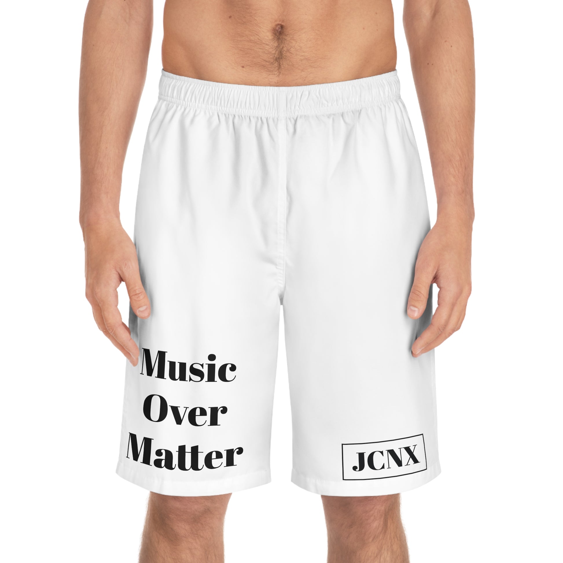 JCNX MUSIC OVER MATTER basketball shorts.